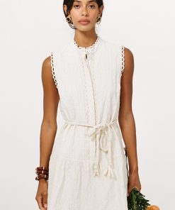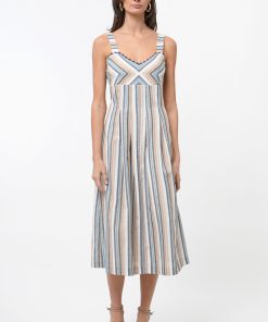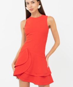 Adelyn Rae Women’s Haven Contrast Scalloped Textured Jacquard Halter Midi Dress | Ivory & Red