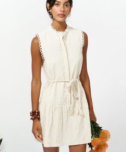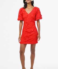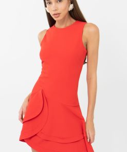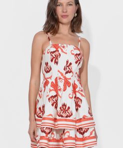 Adelyn Rae Women’s Haven Contrast Scalloped Textured Jacquard Halter Midi Dress | Ivory & Red
