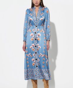 This enchanting long-sleeve blouse features a flattering V-neckline and is beautifully adorned with delicate tiered ruffles cascading down the sleeves and possibly across the bodice, creating a captivating and voluminous silhouette.