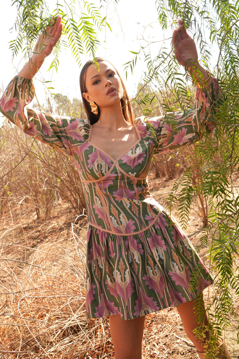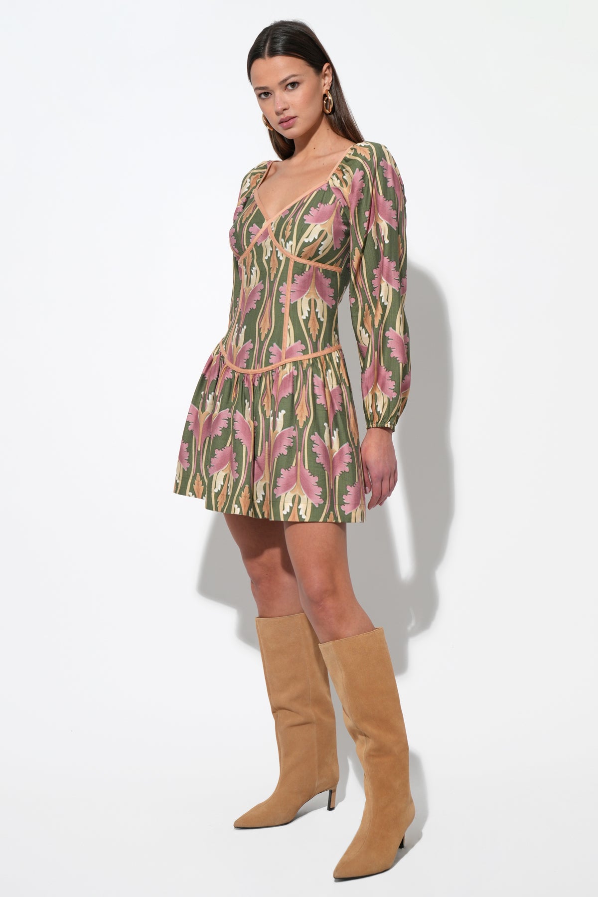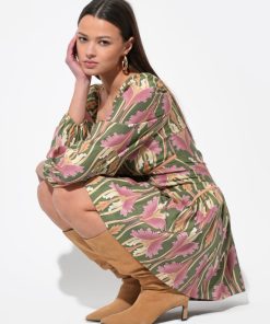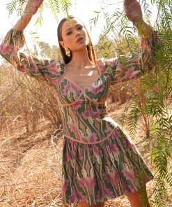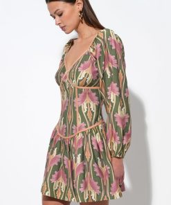 Adelyn Rae Women’s Coralie Drop Waist Floral Mini Dress | Olive Multi