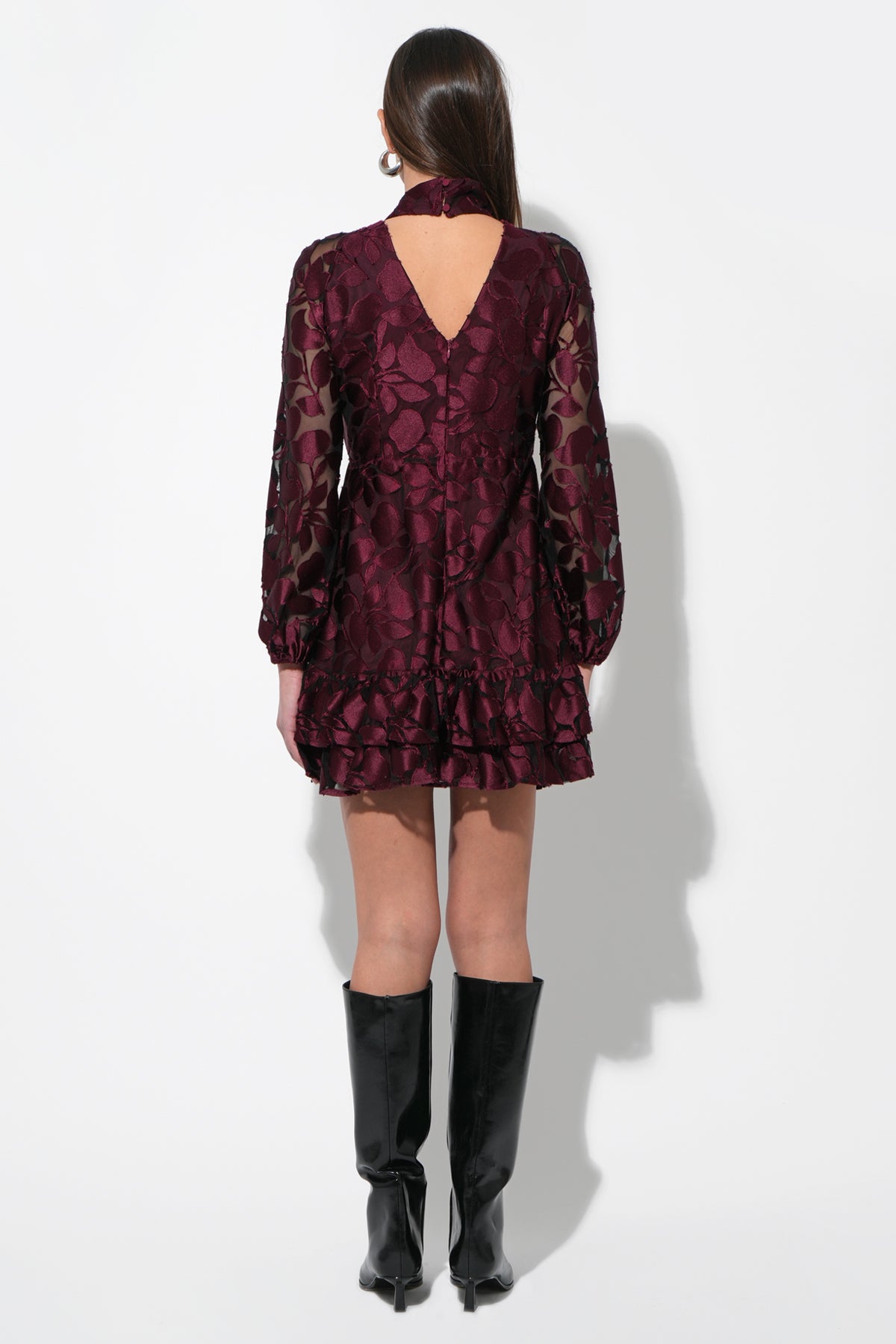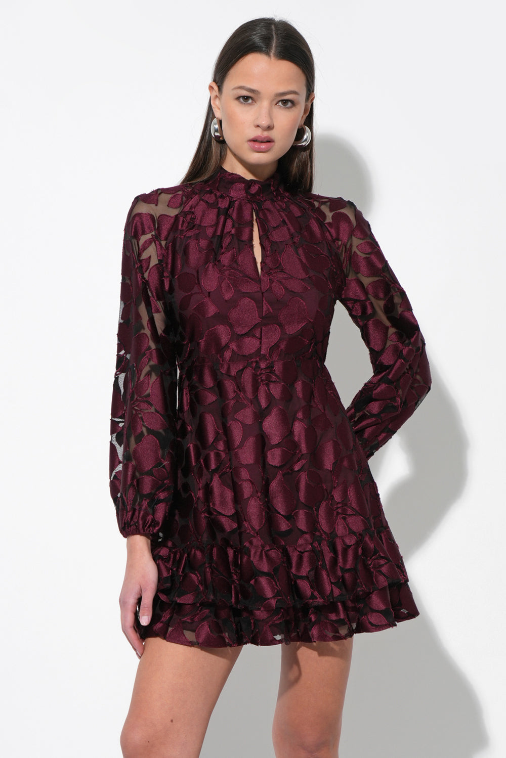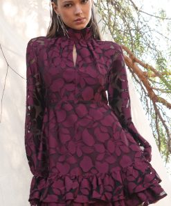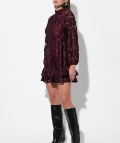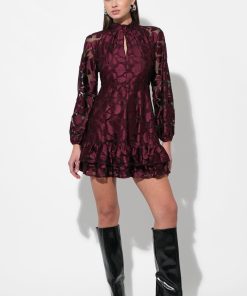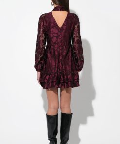 Adelyn Rae Women’s Elinor Velvet Burnout Mock Neck Fit And Flare Dress | Wine