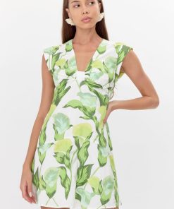 Adelyn Rae Women’s Eloise Twist Front Embroidered Tiered Mini Dress | White & Multi