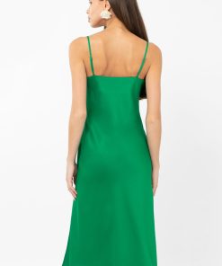 Designed in a bold emerald green, this satin-finish dress features a cowl neckline that flatters, adjustable spaghetti straps for the perfect fit, and a figure-skimming silhouette that moves with you. The thigh-high front slit adds just the right amount of allure, making this the ultimate dress for any night out or special occasion.