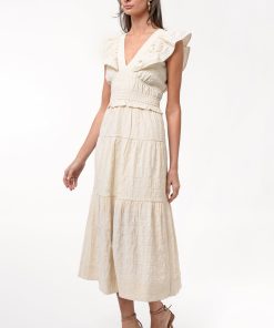 The Jina Midi Dress brings the drama with soft, romantic ruffle sleeves and a cinched waist that defines your shape just right. The crinkled fabric adds a bit of edge to the sweetness, making it the kind of piece you’ll reach for when you want to look like you tried (but didn’t).