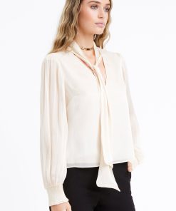 Its subtle cream shade and cascading pleated long sleeves make the Jisenia Tie Neck Blouse an endlessly versatile and stylish choice. Effortlessly smart, it’s the essential piece in anyone’s wardrobe!