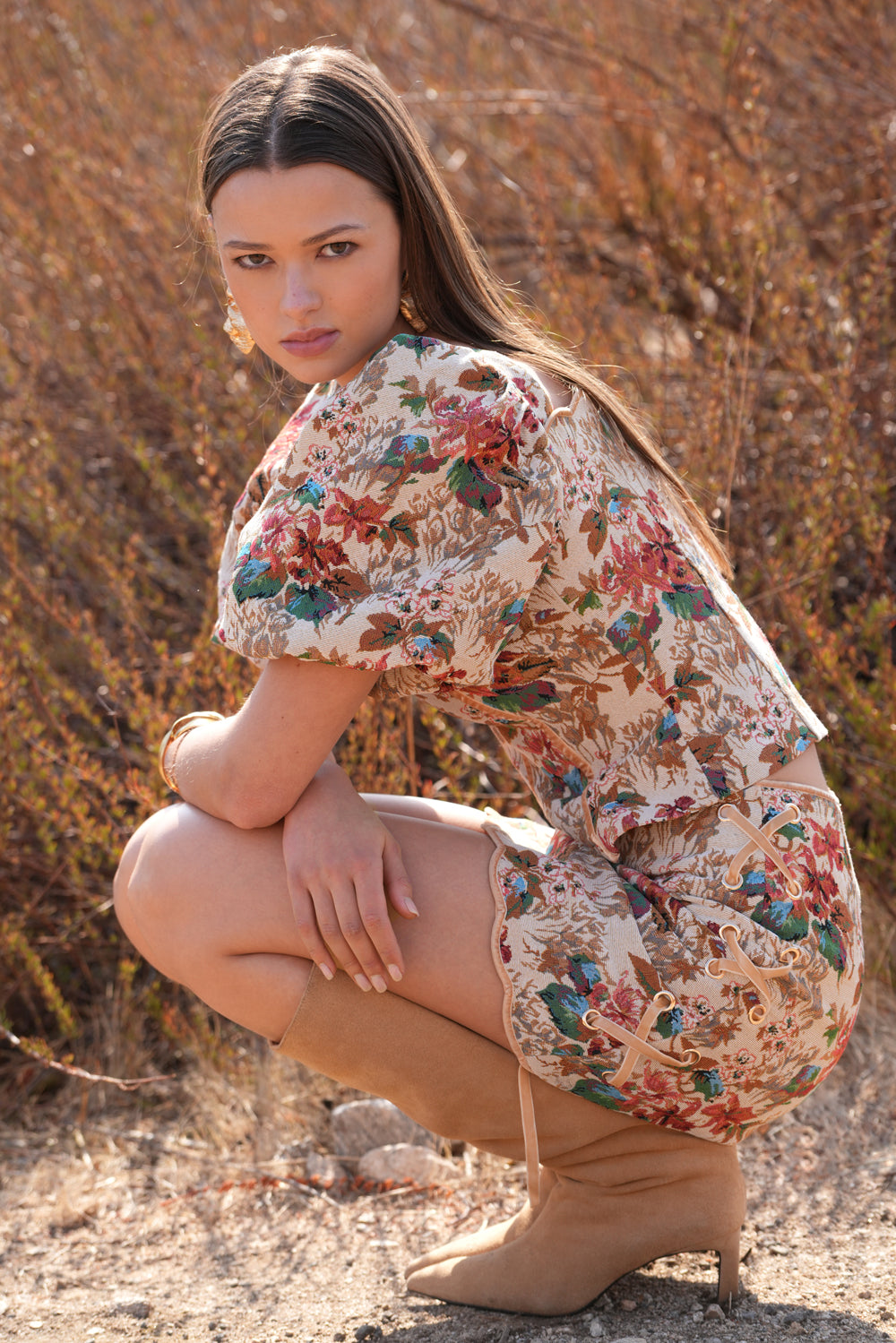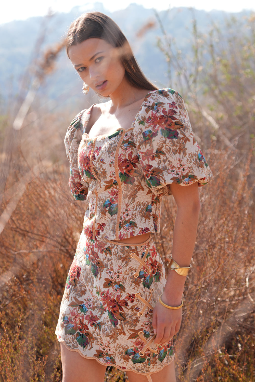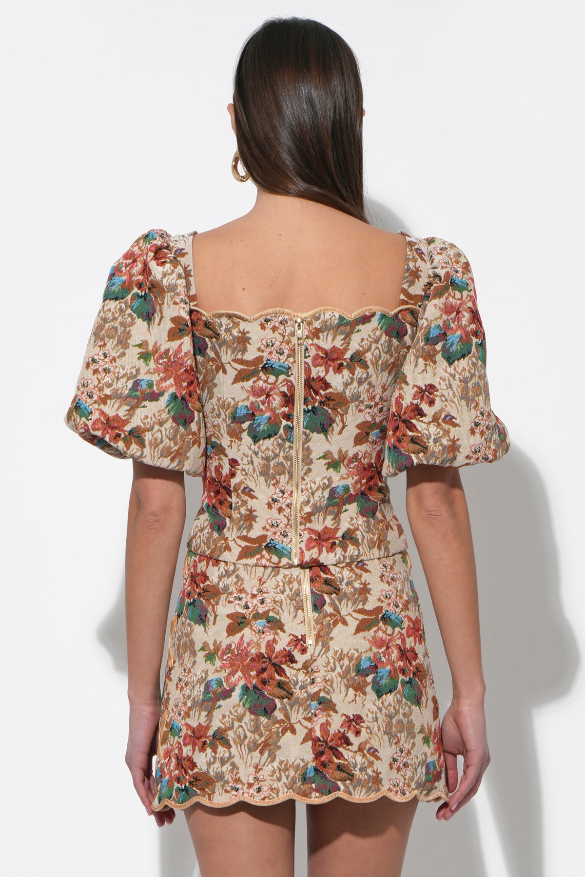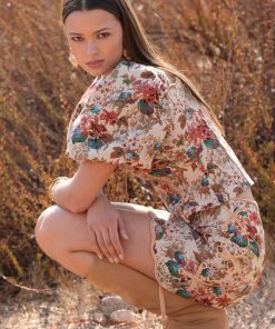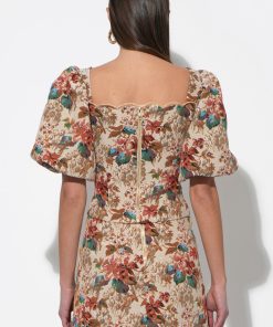 Adelyn Rae Women’s Judy Puff Sleeve Tapestry Top | Beige