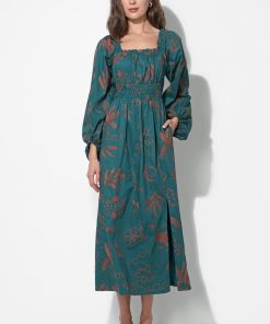 Adelyn Rae Women’s Magnolia Smocked Bodice Midi Dress | Teal & Rust