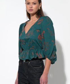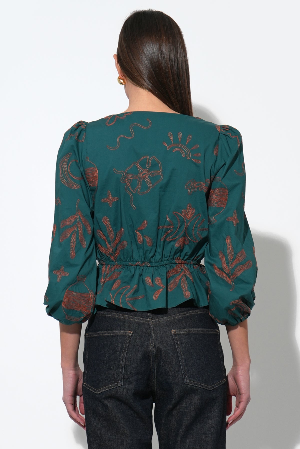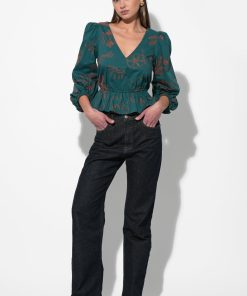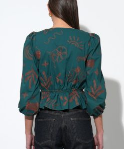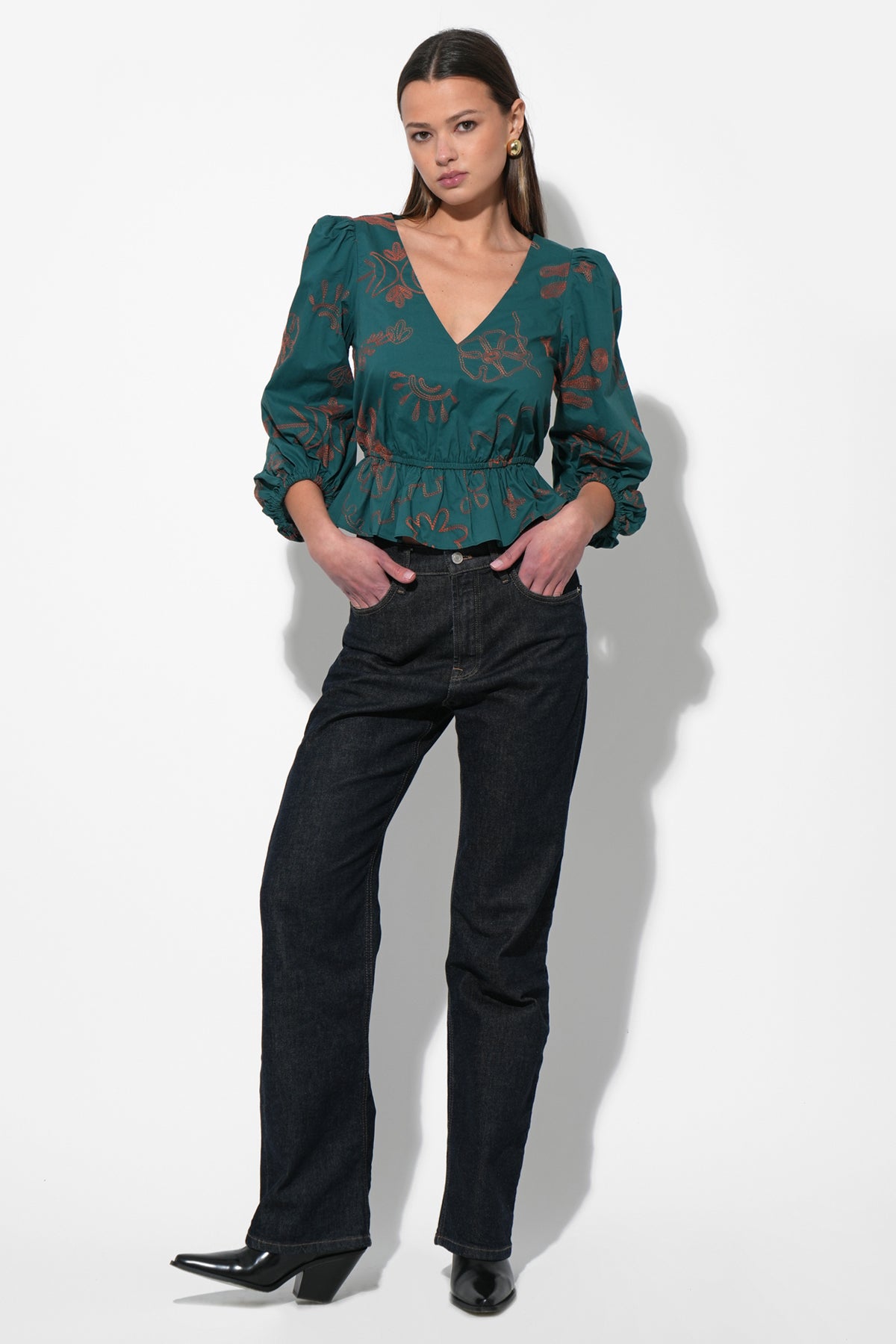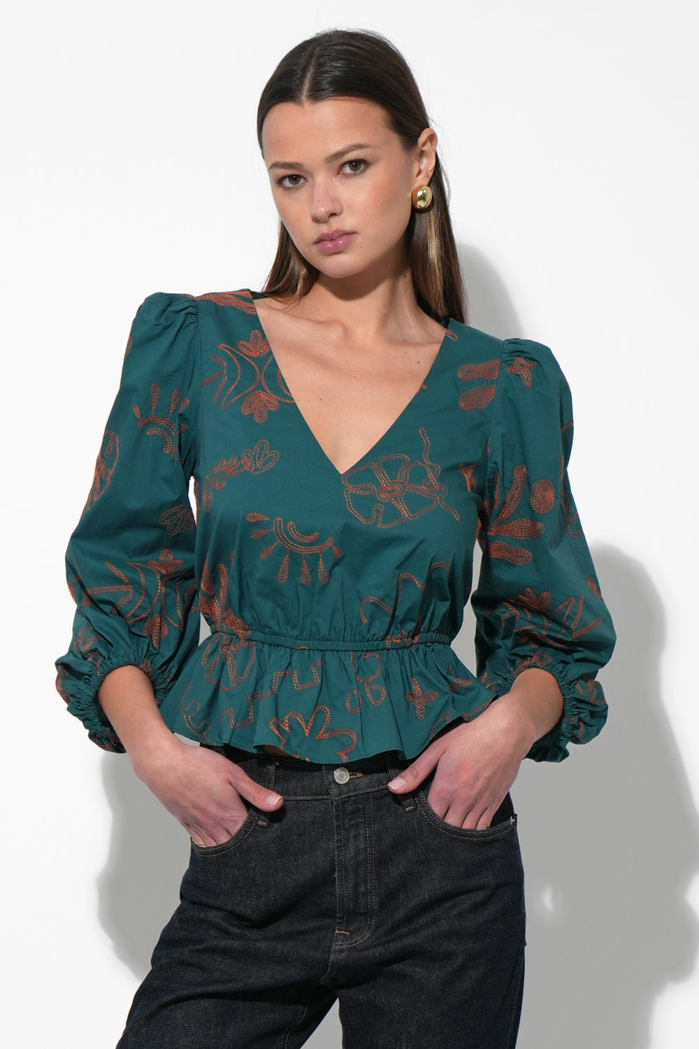 This delightful blouse, in a fresh and versatile light hue, features a flattering V-neckline that beautifully frames the décolletage. Its defining details include romantic puff sleeves, adding a touch of feminine flair, and a comfortable smocked waist that creates a beautifully cinched silhouette.