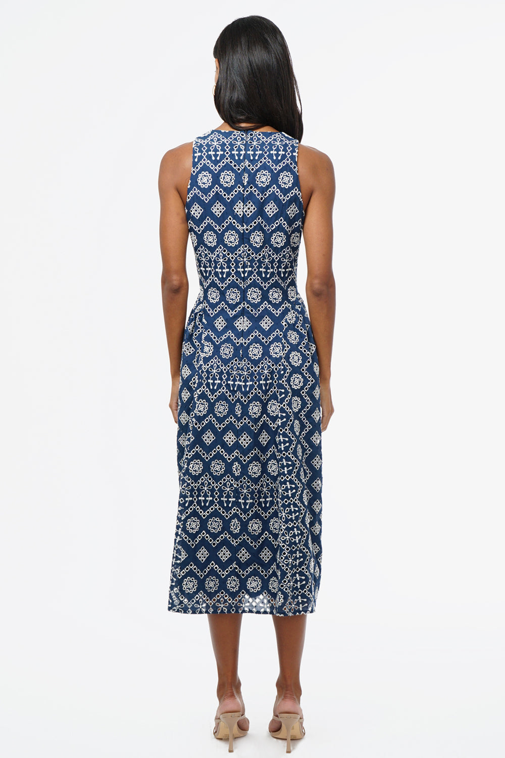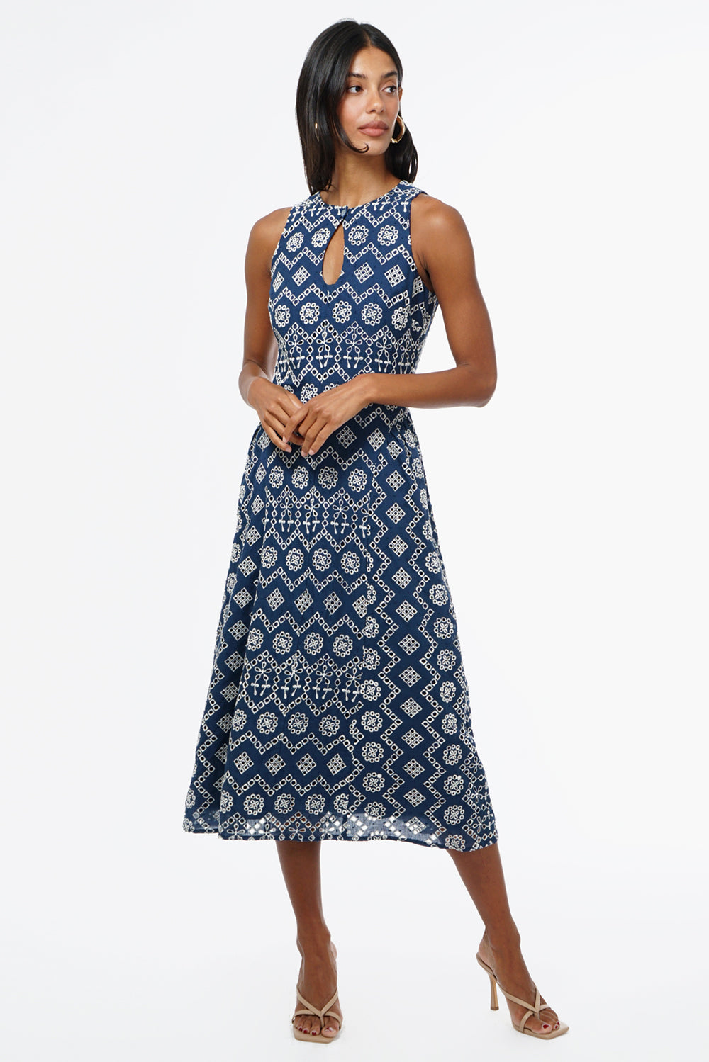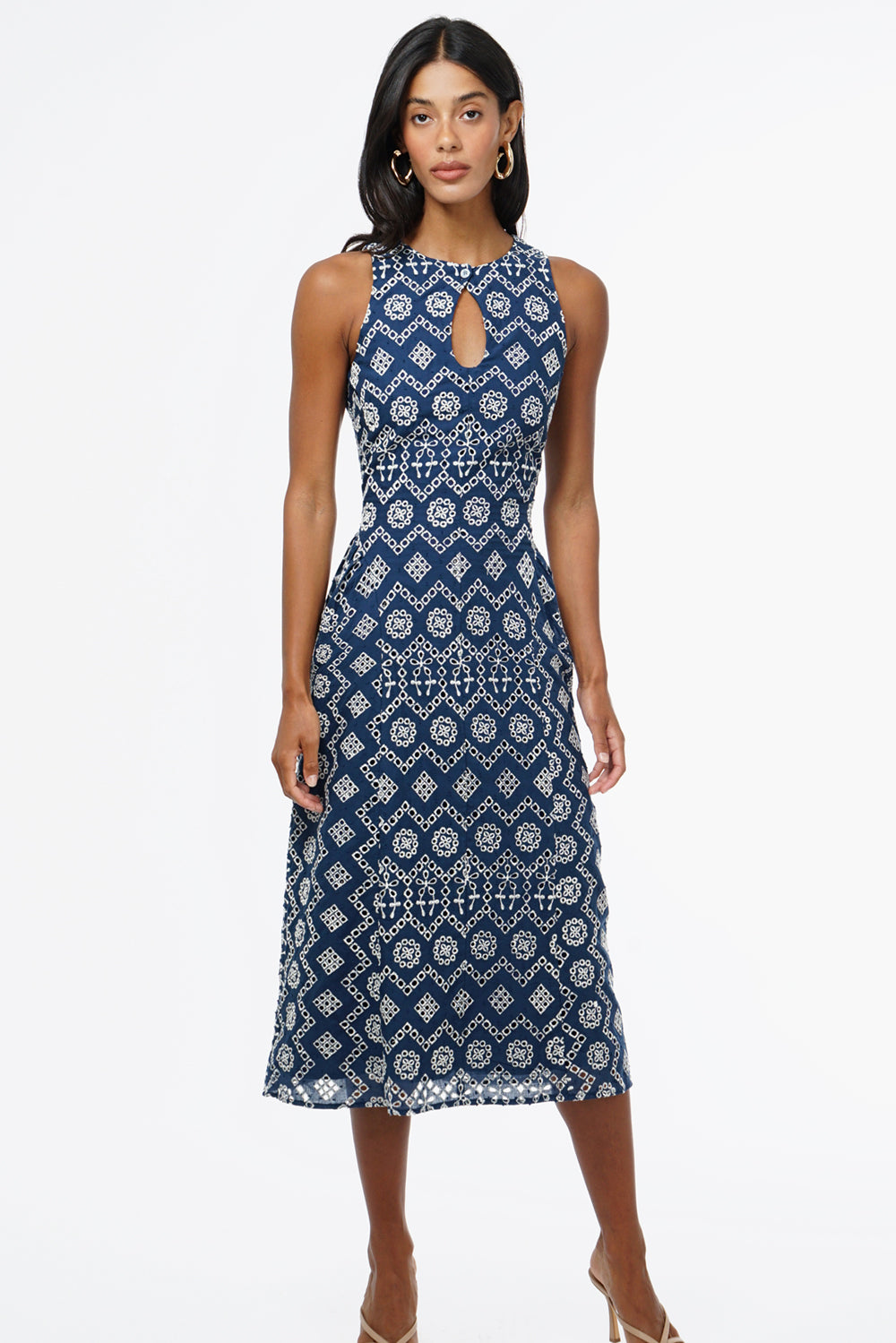 Adelyn Rae Women’s Soraia Cotton Eyelet Midi Dress | Navy