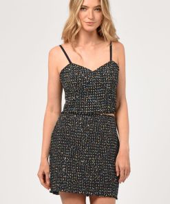 The Vicky Tweed Bustier Top is an eye-catching option for your next event. Crafted from black tweed with specs of color, the top offers the perfect combination of classic elegance with a touch of flair. Perfect for a night out or a party setting, this top will help you stand out from the crowd. Can be worn with Vicky Skirt and Blazer.